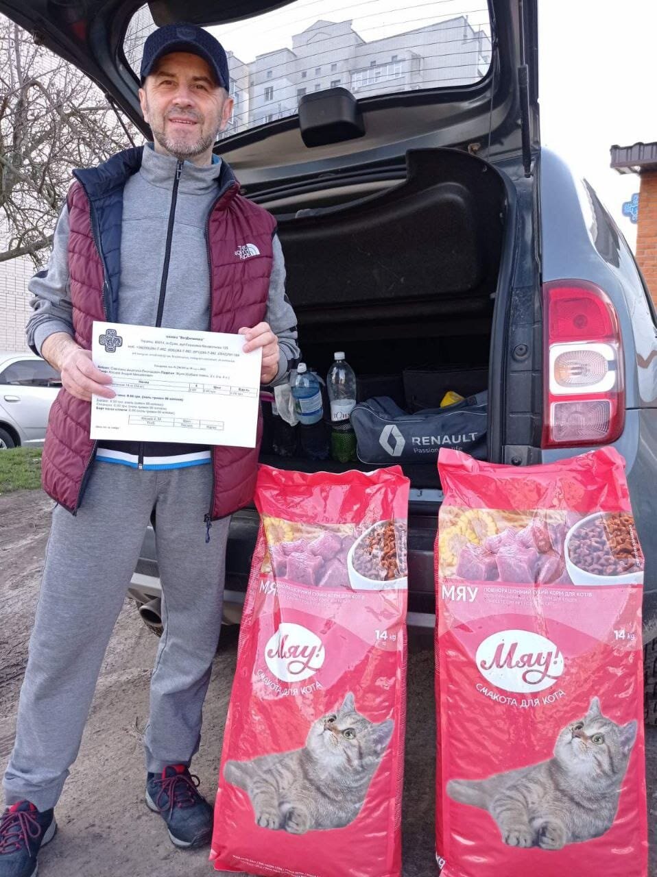 A grant we awarded to Dr. Andrii Klietsov allowed him to deliver urgently needed pet food to the pets of Ukraine. He says "Thank you everyone for your donations and support. With your help, we can establish a process of providing veterinary care to animals injured during the war in Ukraine, because animals, like people, have an inalienable right to life!"